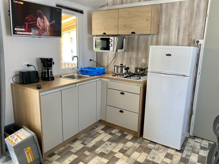 Profitez d’un séjour confortable en famille ou entre amis dans notre mobil-home 3 chambres, spacieux et fonctionnel. Idéal pour accueillir jusqu’à 6 personnes, il dispose d’une belle terrasse semi-couverte pour savourer vos vacances en plein air.