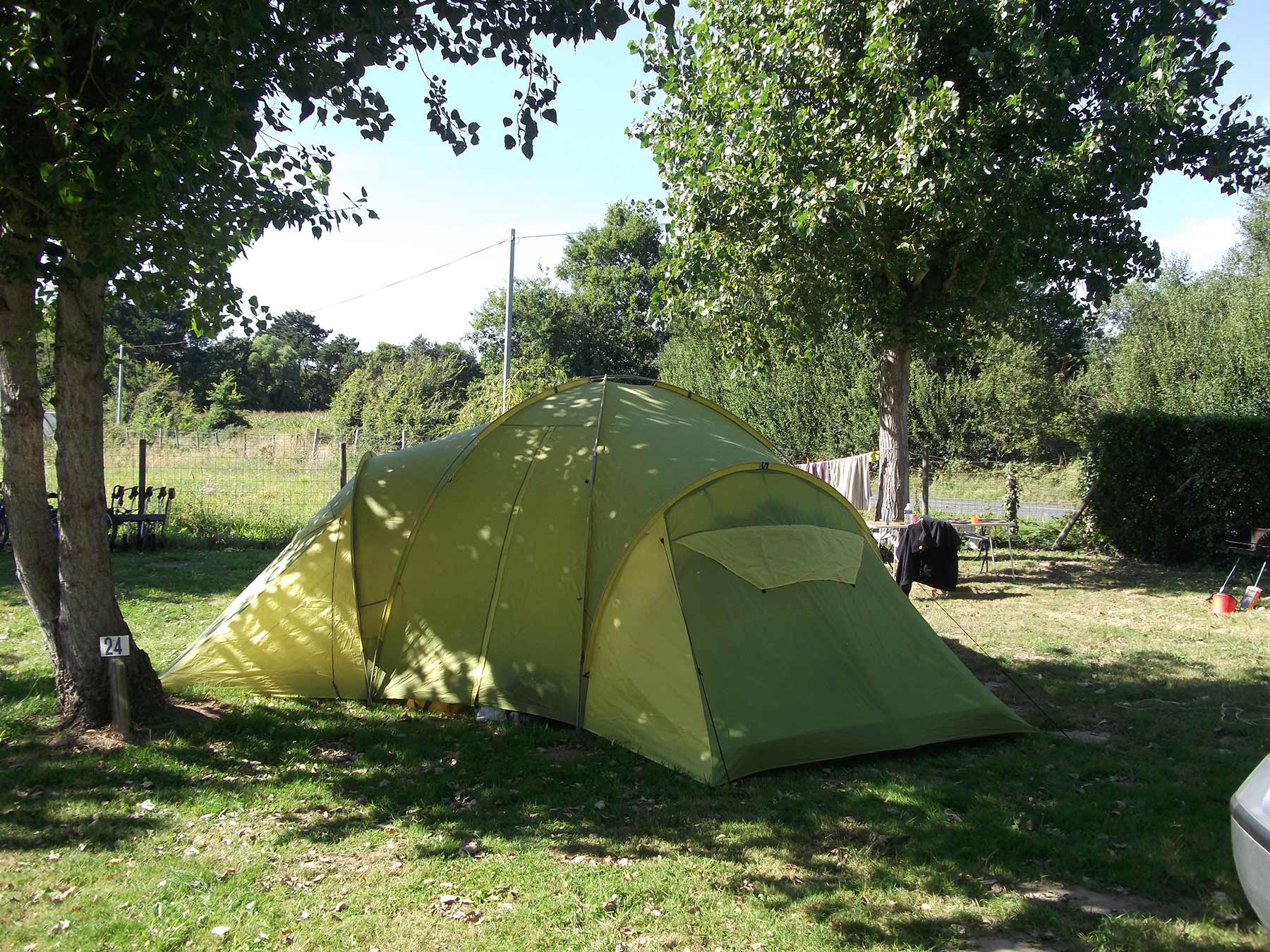 • 20 emplacements spacieux (~80 m²), délimités par des haies ou palissades